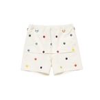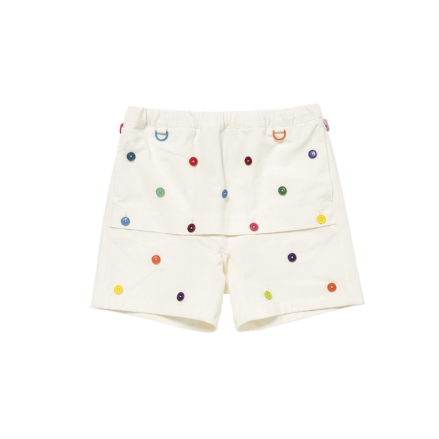 前身頃に釦がちりばめられたショーツ。 丈はだいぶ短いです。 生地はぬめり感のある綿キャンバス。 表地:綿100% モデルはMサイズ着用