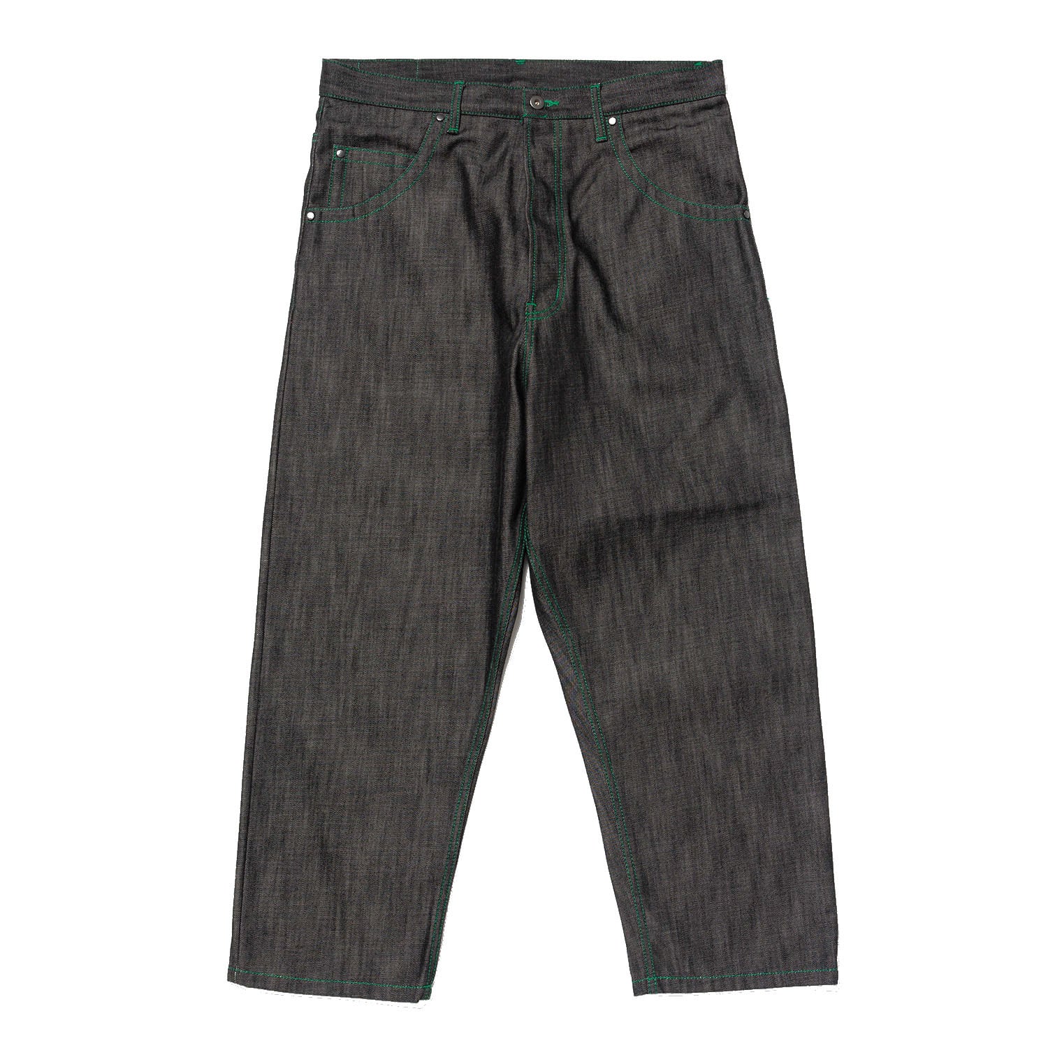 中厚地の13.5オンスのブラックデニムに、ステッチとウエストのパッチが7色展開。